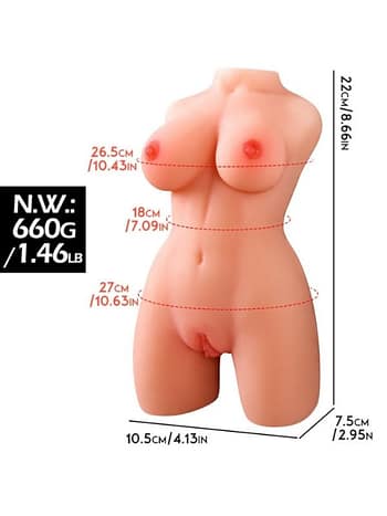 - Çift Yönlü Uyarım: Hem göğüs detayları hem de vajina formuyla görsel ve dokunsal tatmini birleştirir.