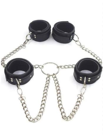Kontrolü ele alın veya kendinizi tutkunun akışına bırakın! Bu özel set, el ve ayak bileklerini birbirine bağlayan dayanıklı zincir yapısıyla esaret fantezilerinizi bir üst seviyeye taşıyor. Kaliteli deri dokusu ve sağlam metal aksamları sayesinde hem güvenli hem de son derece kışkırtıcı bir deneyim sunar.
